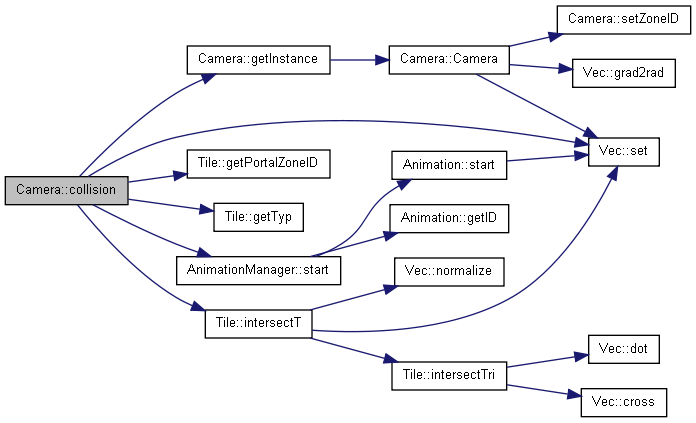 Bei den Kollsisionsabfragen wird aus dem aktuellen Standpunkt und dem naechsten Standpunkt ein Strahl ermittelt. Schneidet dieser Strahl eine Tile, so hat eine Kollision stattgefunden. Die Kamera darf sich dann NICHT zu diesem neuen Standpunkt bewegen. Um eine rel. langsame und weiche Bewegung im Raum zu erreichen, ist die Distanz pro Step recht kurz. Daraus folgt, das die Camera sich auch sehr nah an eine WALL annaehern kann, was aber zu Render- bzw. Clippingproblemen fuehrt. Deshalb wird fuer die Collisionsabfrage eine groessere Distanz gefordert. Dazu gibt es hier die m_vecPosColl, m_vecDirColl und m_stepColl. Fuer die Kollision gegen ein PORTAL muss allerdings wieder die normale Schrittweite genommen werden, da sonst ein Portaluebergang zu frueh angezeigt wird, obwohl die Camera sich mit dem naechsten Step noch in der alten Zone befindet.