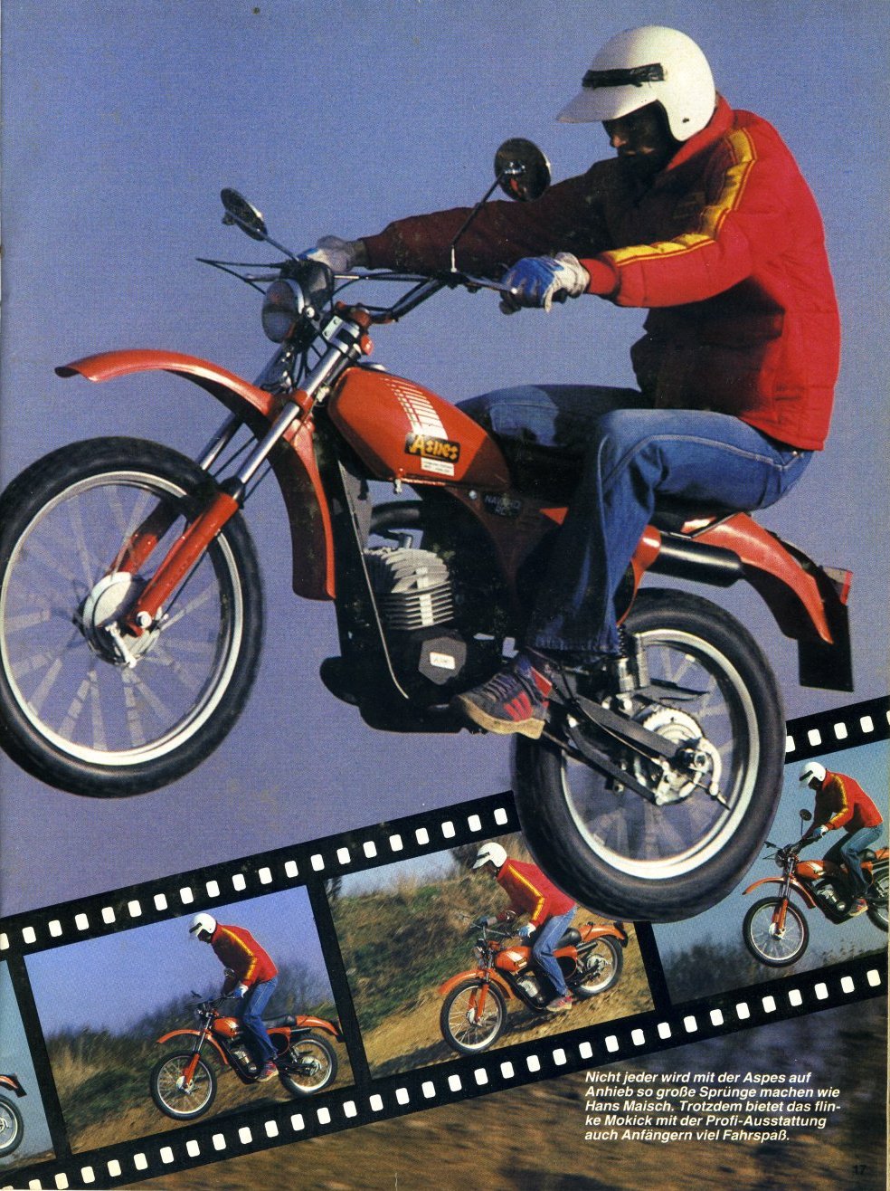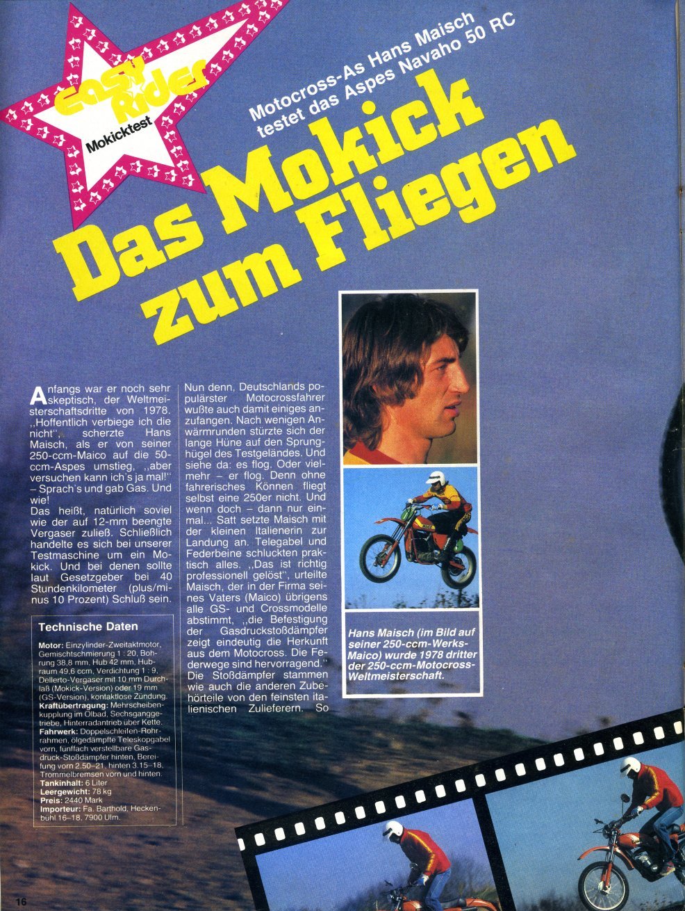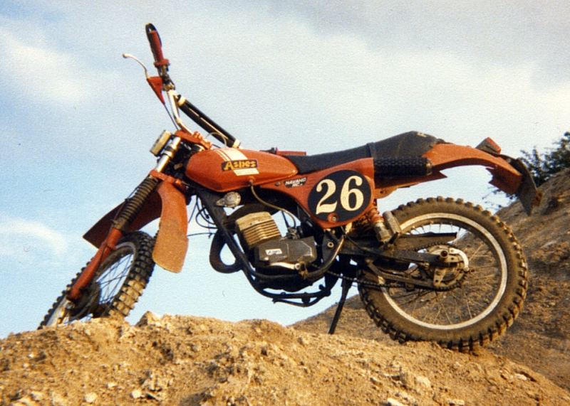 Angefangen hat es mit einem Mofa und dann mit sechzehn der Umstieg auf ein Mokick - ein italienisches Mokick, eine Aspes Navaho 50ccm. |